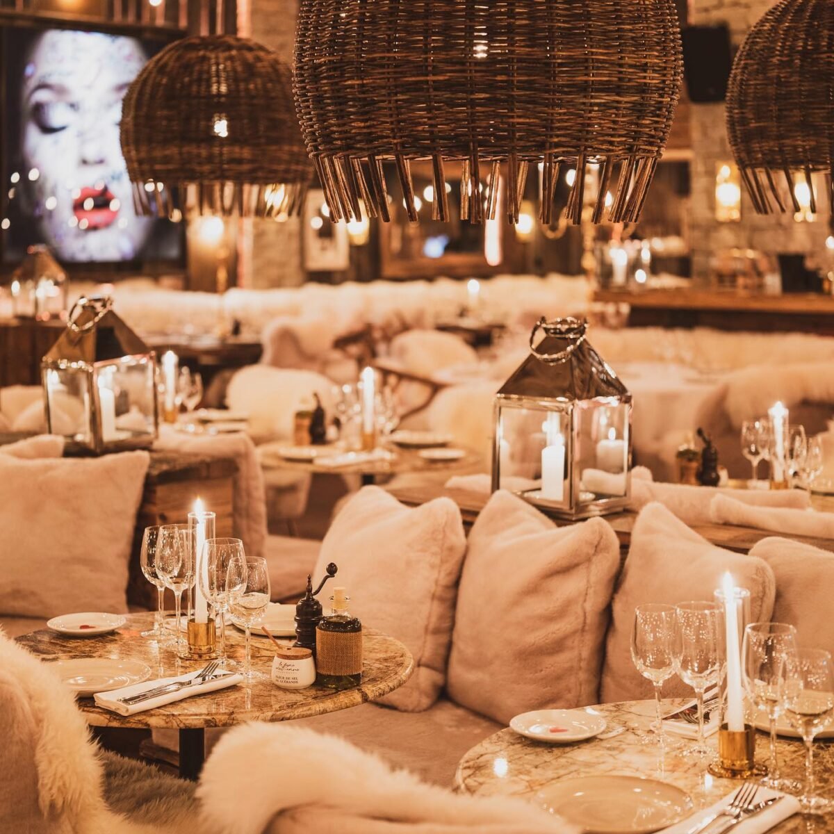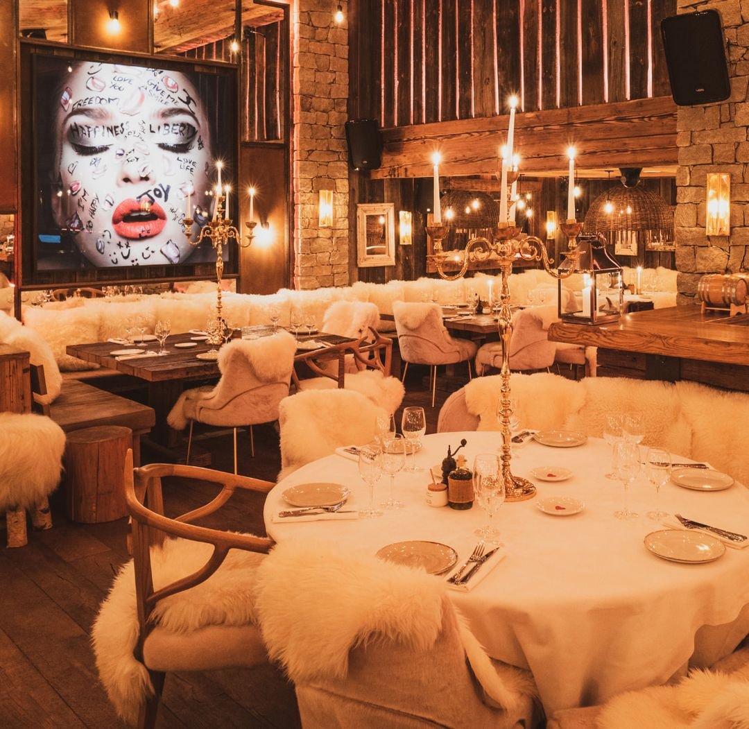 La Ferme Saint-Amour Courchevel is where restaurant, bar, and club converge in one lavish alpine setting. Part of the wider Saint-Amour brand, this glamorous venue begins the evening with refined Mediterranean-inspired dining—lobster pasta, truffled meats, and artfully plated desserts—served in a sensuous, design-forward space.