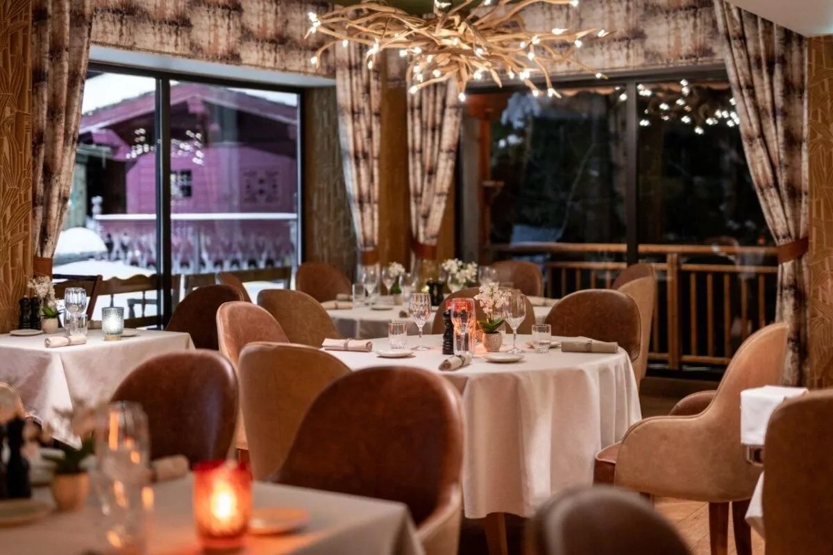 The setting is warm and chalet-inspired, offering a sense of cosy sophistication away from the bustle of Courchevel 1850. Service is attentive, yet relaxed—ideal for a refined dinner that still feels like home.