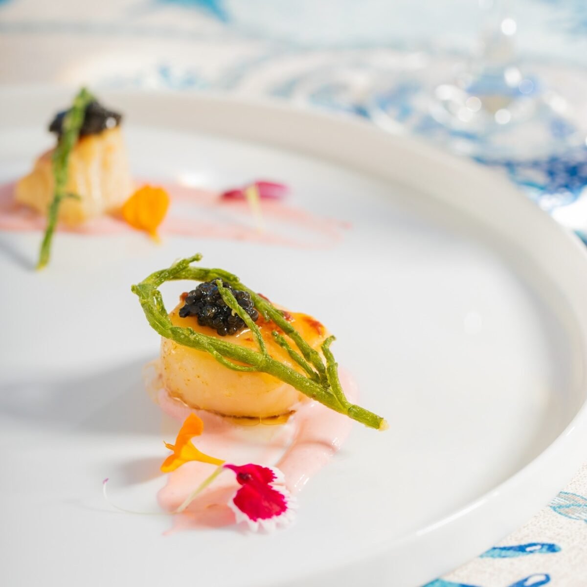 White cabanas, neatly arranged loungers, and Mediterranean landscaping create a serene setting for sun-soaked days in comfort and style. The beachfront restaurant delivers classic coastal cuisine with flair—crudo, grilled fish, handmade pastas—served with warmth and simplicity. A thoughtful wine list and attentive service make every lunch feel like a gentle celebration.