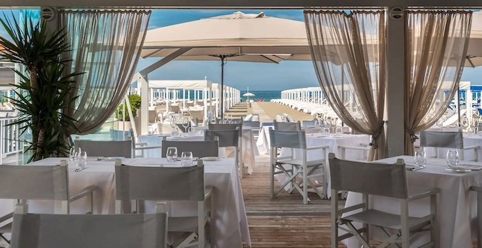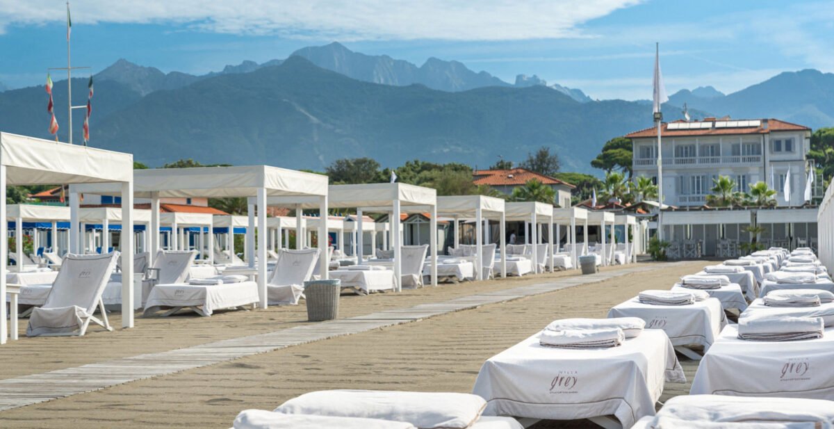Part of the elegant Villa Grey, Beach Club I Bagni offers a serene and stylish escape on Forte dei Marmi’s iconic coastline. With its signature white parasols, neatly spaced loungers, and soft coastal palette, the club embodies understated Tuscan luxury—quiet, graceful, and immaculately maintained.