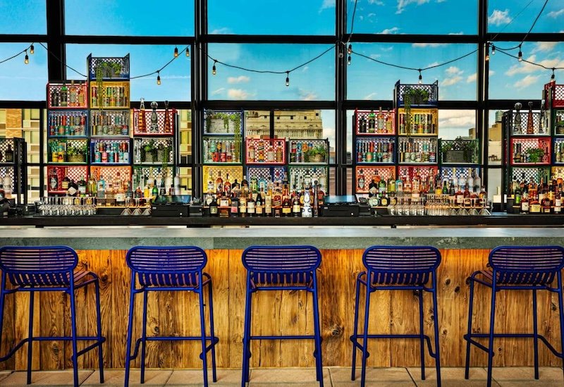 The Ready Rooftop Bar sits above the Moxy East Village as one of the neighbourhood’s more elevated drinking spots, both literally and in atmosphere. The rooftop opens onto wide views over the East Village’s low-rise streets, offering a perspective on downtown Manhattan that feels genuinely revealing.