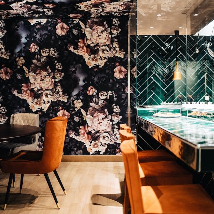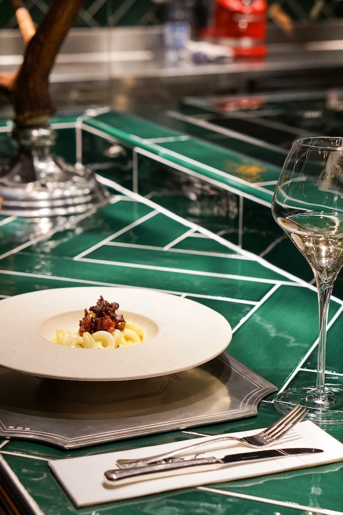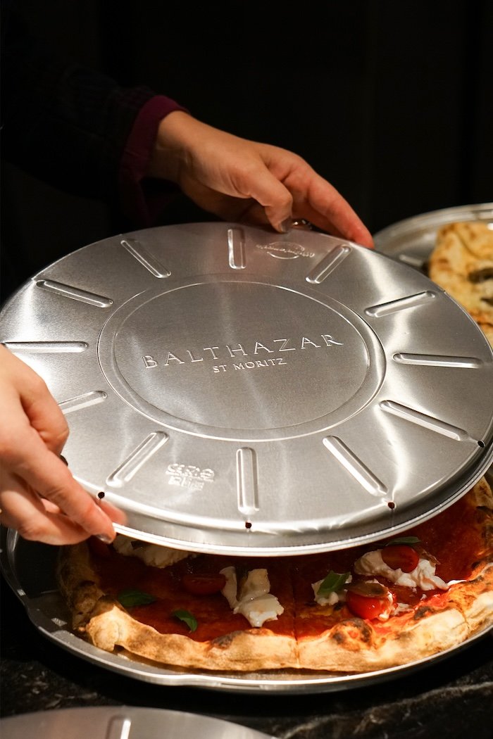 Located just steps from St. Moritz’s iconic Via Serlas, Balthazar offers a polished yet eclectic dining experience in the heart of the Engadin. The interiors are sleek and contemporary, featuring velvet seating, warm woods, and curated art, which creates an atmosphere that’s as stylish as it is welcoming.