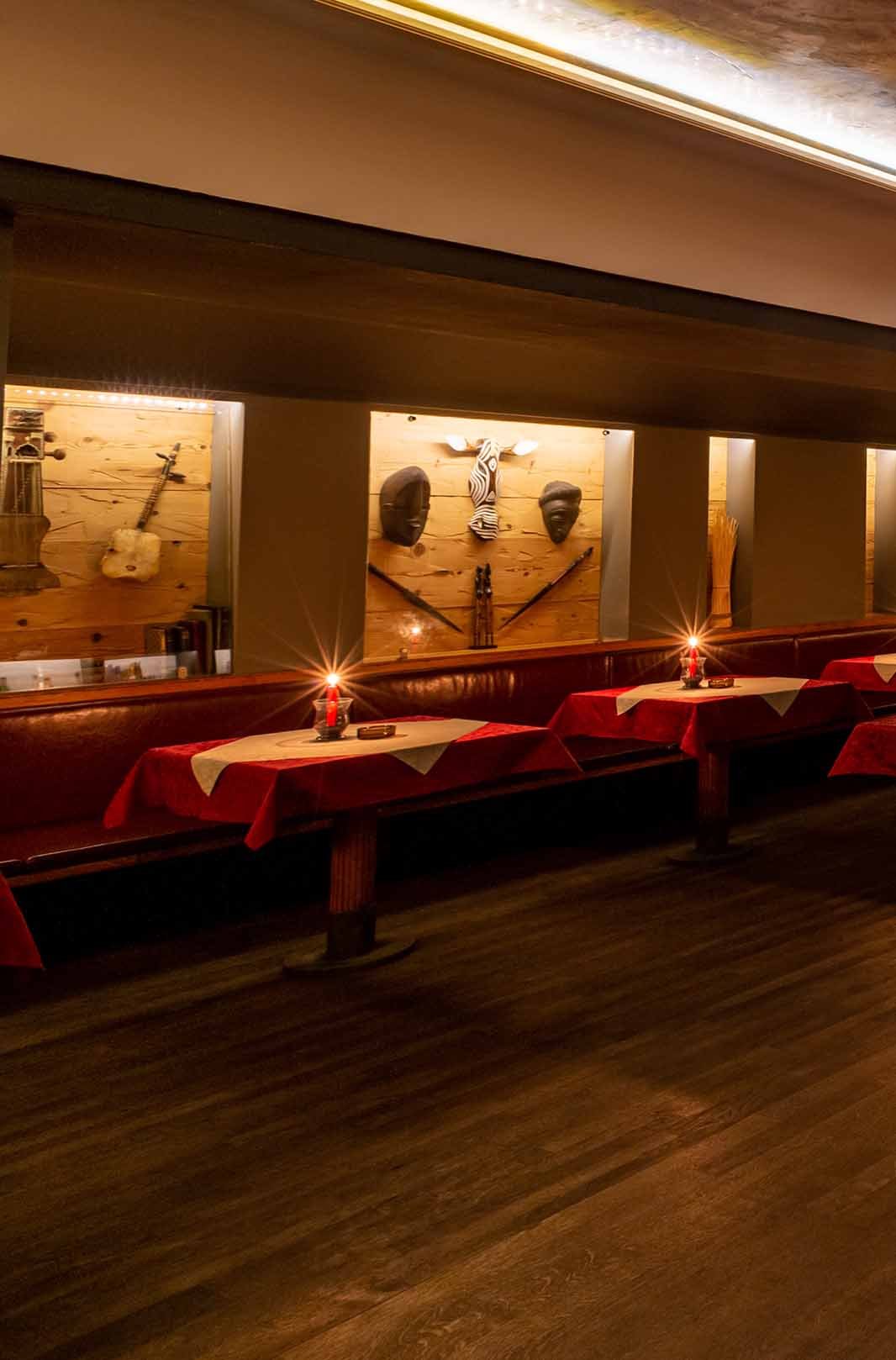 The interiors are moody and masculine: dark woods, leather banquettes, and candlelit corners that channel the spirit of a bygone era. Behind the bar, rare whiskies, classic cocktails, and premium cigars are served with meticulous attention. A handpicked lineup of DJs and live performers keep the energy intimate but electric, from après-ski soirées to after-midnight revelry.