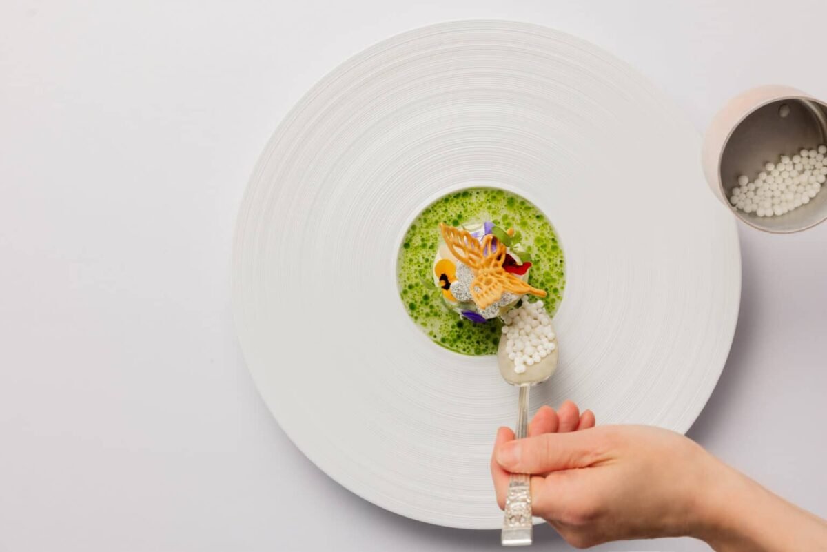 The philosophy is rooted in “purist aroma cuisine”—letting top-quality ingredients speak for themselves through restrained technique and thoughtful composition. Dishes are artful but never overwrought: scallops with fermented citrus, alpine herbs with freshwater fish, or perfectly executed reductions that unfold across layers of flavour. Every plate feels deliberate, and nothing is there by accident.
