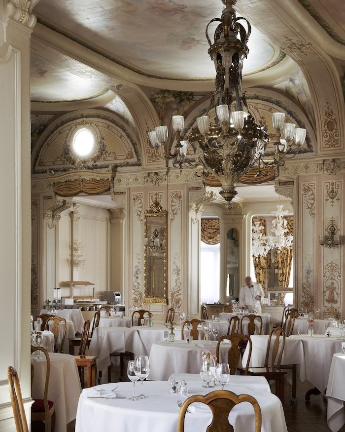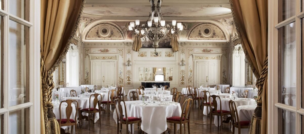 Housed beneath soaring frescoed ceilings in the historic heart of the Grand Hotel Kronenhof, the Grand Restaurant offers a dining experience steeped in old-world charm and quiet luxury. Chandeliers, polished silver, and white-glove service set the stage for a return to classic refinement in the Swiss Alps.