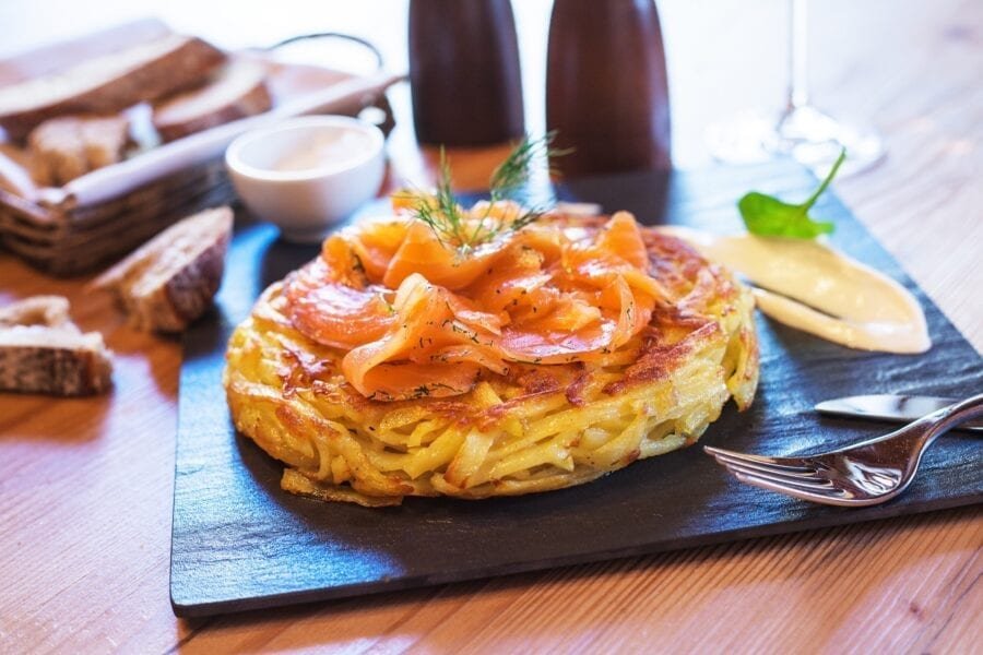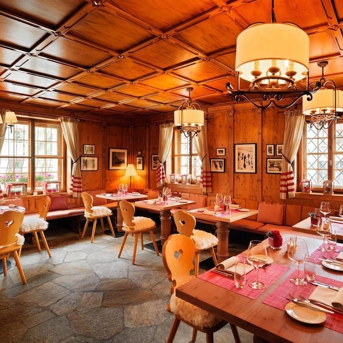 Awarded a Michelin star, chef Rolf Fliegauf’s menu is both regionally rooted and creatively elevated. Expect reimagined mountain classics—lake fish, game, foraged herbs—delivered with technical precision and visual grace. Seasonal tasting menus offer a journey through textures and terroir, complemented by a thoughtful wine list and intuitive service.