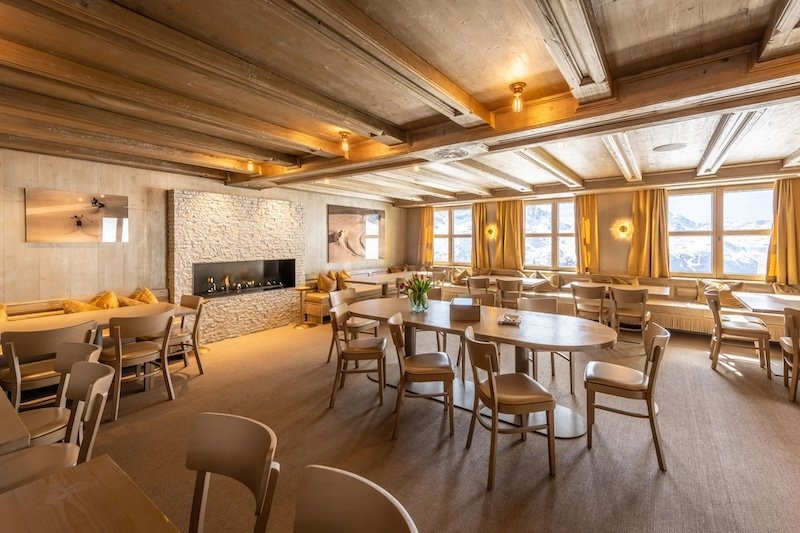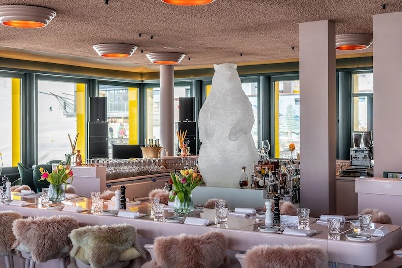 Perched high on Corviglia with sweeping views over the Engadin valley, White Marmot blends bold alpine design with elevated cuisine in a setting that feels effortlessly chic. Sleek lines, sheepskin throws, and floor-to-ceiling windows make this stylish mountaintop venue a standout—whether you’re stopping in for lunch, après-ski, or a long, sun-soaked afternoon on the terrace.