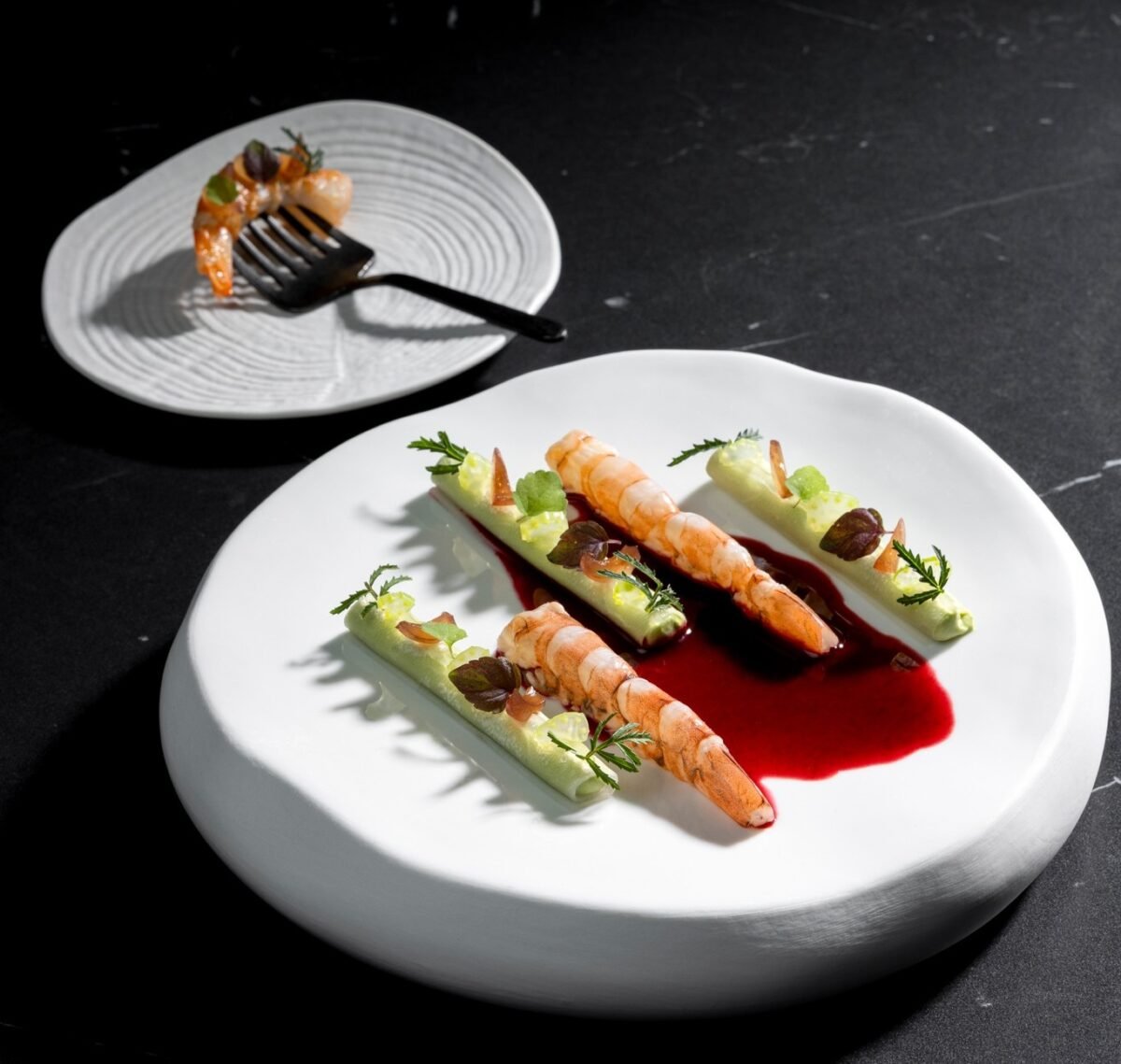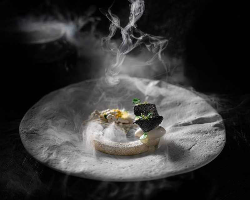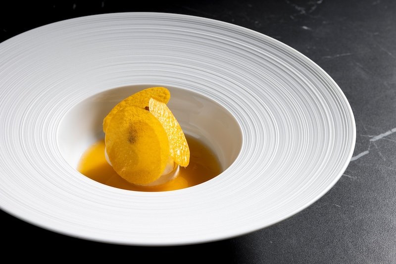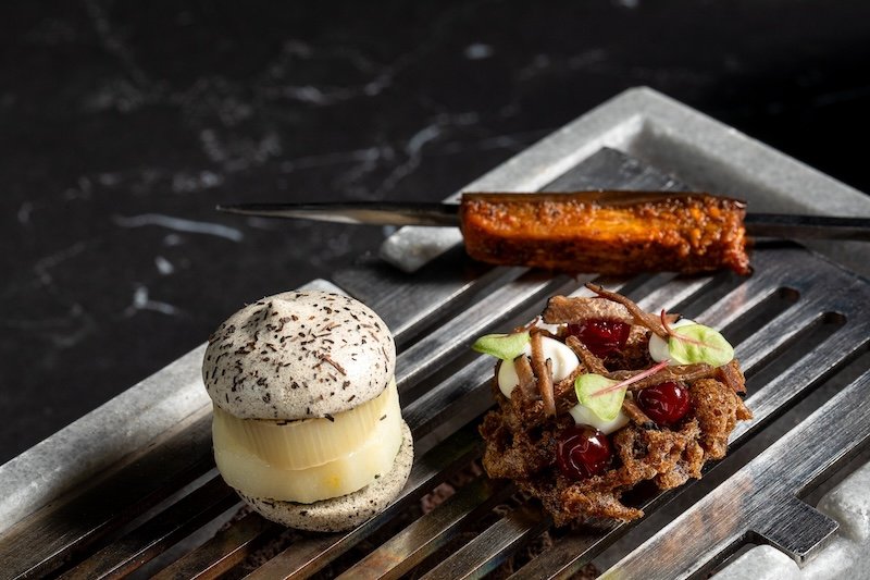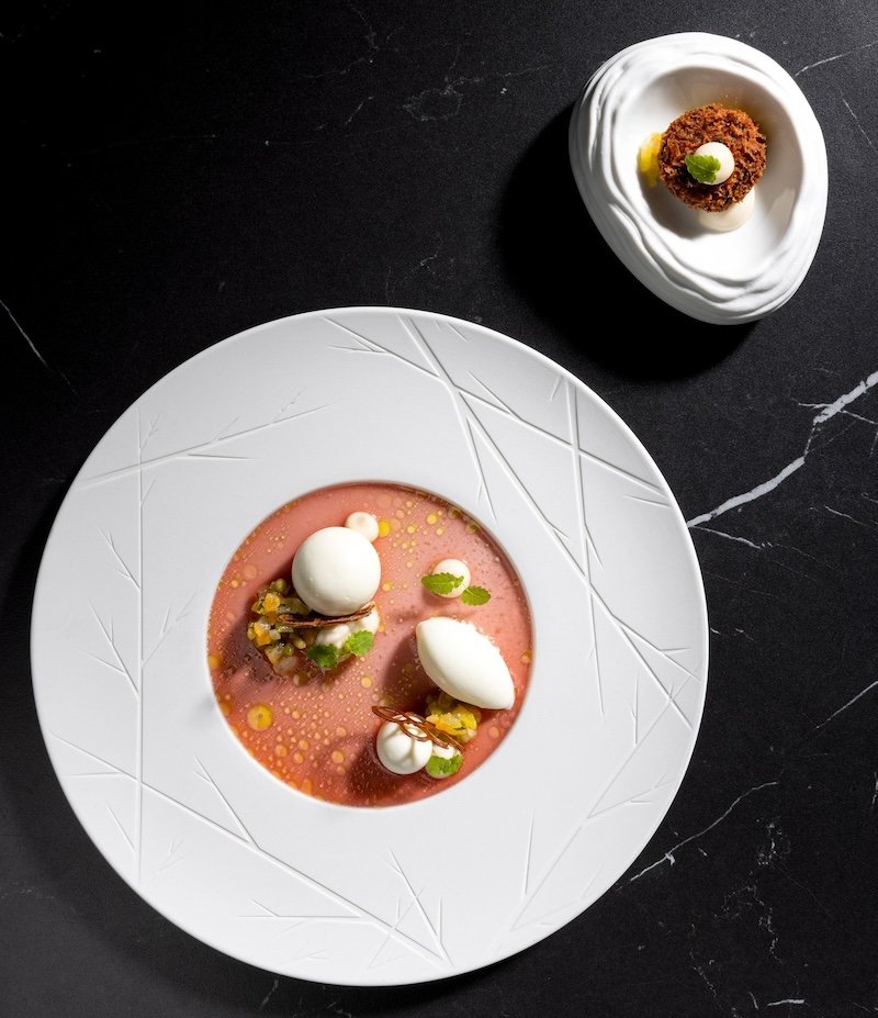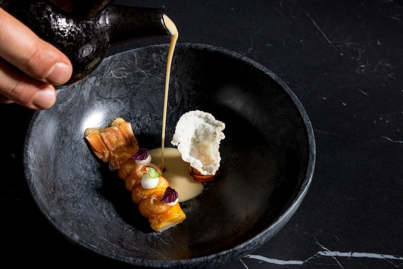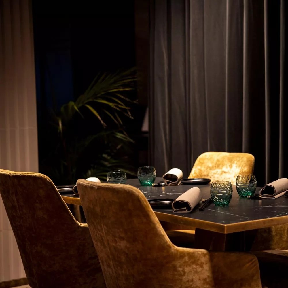 The dining room is sleek yet warm, with dark woods, subtle lighting, and an open kitchen that brings a quiet energy to the space. Service is professional, engaged, and gently paced, creating the kind of setting where conversation and detail both have room to breathe.