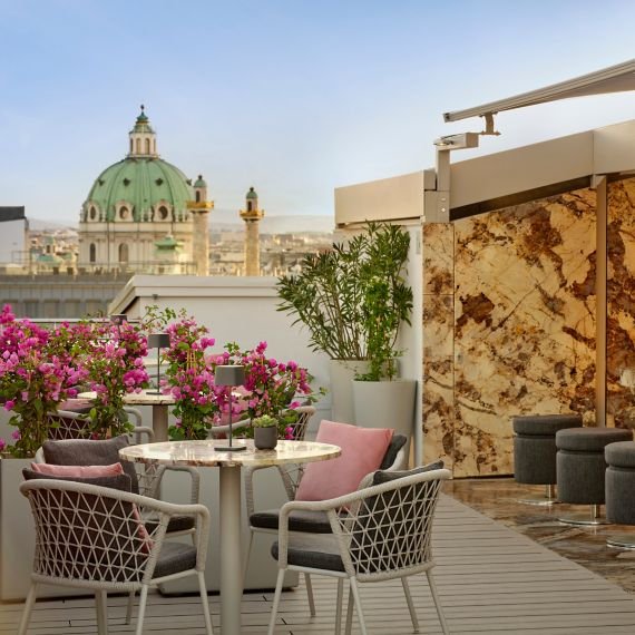 Atmosphere Rooftop Bar crowns The Ritz-Carlton, Vienna with one of the city’s most enviable views—panoramic skyline, cathedral spires, and the slow arc of the Ringstrasse far below. It’s a seasonal rooftop retreat that draws a smart after-work crowd, weekend cocktail lovers, and in-the-know travellers alike.