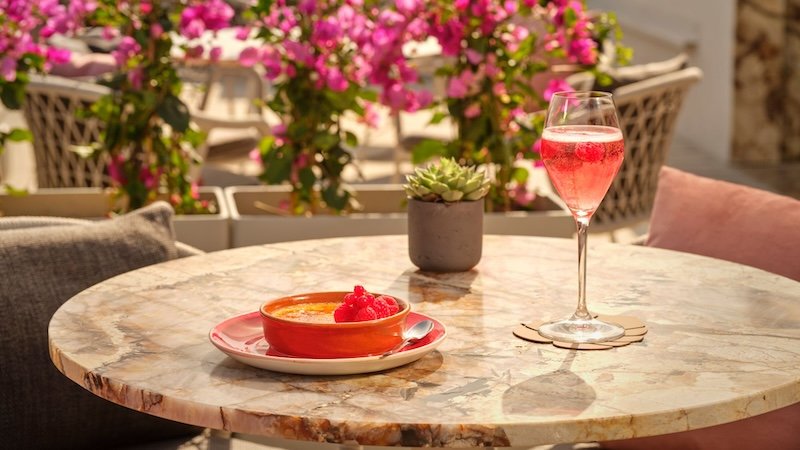 The mood is relaxed but refined: cushioned loungers, soft music, and an air of unhurried elegance. Signature cocktails come with a creative edge—often incorporating local herbs, infusions, or seasonal fruits—while the wine and Champagne list is curated with international flair. Light bites are available but never steal focus from the drinks or the view.
