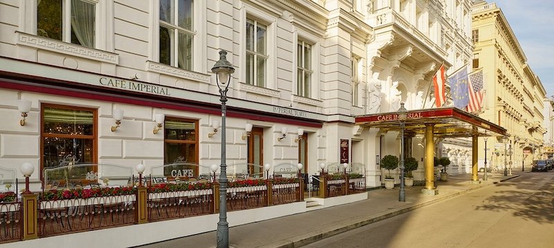 Café Imperial is a gilded tribute to the golden age of Vienna—soaring ceilings, chandeliers, polished silver, and service that hasn’t rushed in decades. Located inside the Hotel Imperial, this legendary café is known as much for its imperial gravitas as for its pastries, chief among them the house specialty: the Imperial Torte.