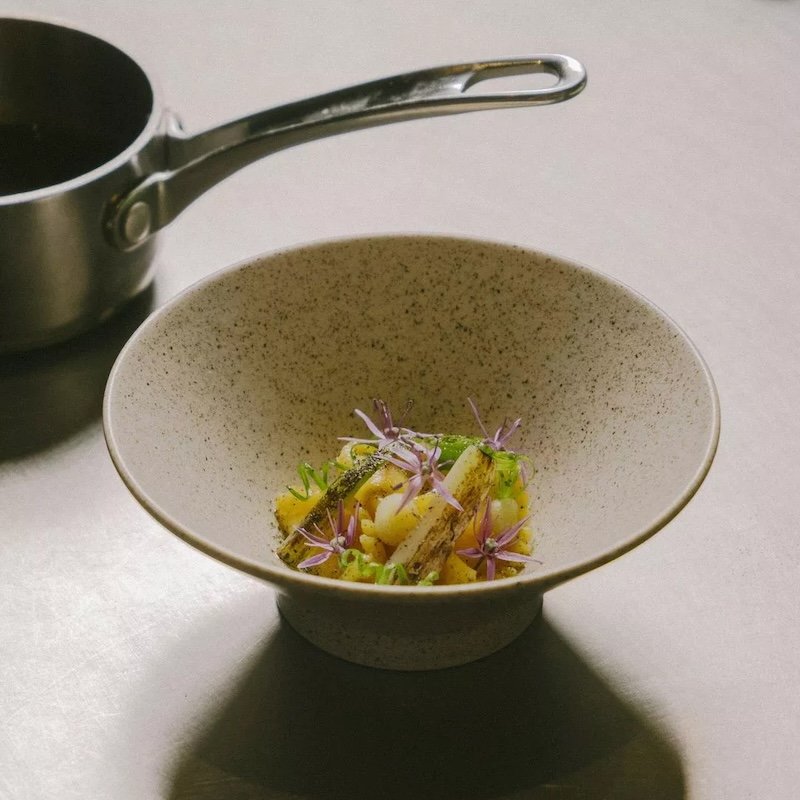 The kitchen is led by Josef “JOLA” Lackner and Lukas Mraz, whose multi-course menus feature seasonal, entirely plant-based creations with global influence and modern flair. Expect compositions like fermented beet with hazelnut and umeboshi, or Jerusalem artichoke with truffle and koji—bold in flavour, minimal in presentation, and deeply thoughtful in construction. Every course is part of a larger rhythm, matched by carefully curated wine and non-alcoholic pairings.