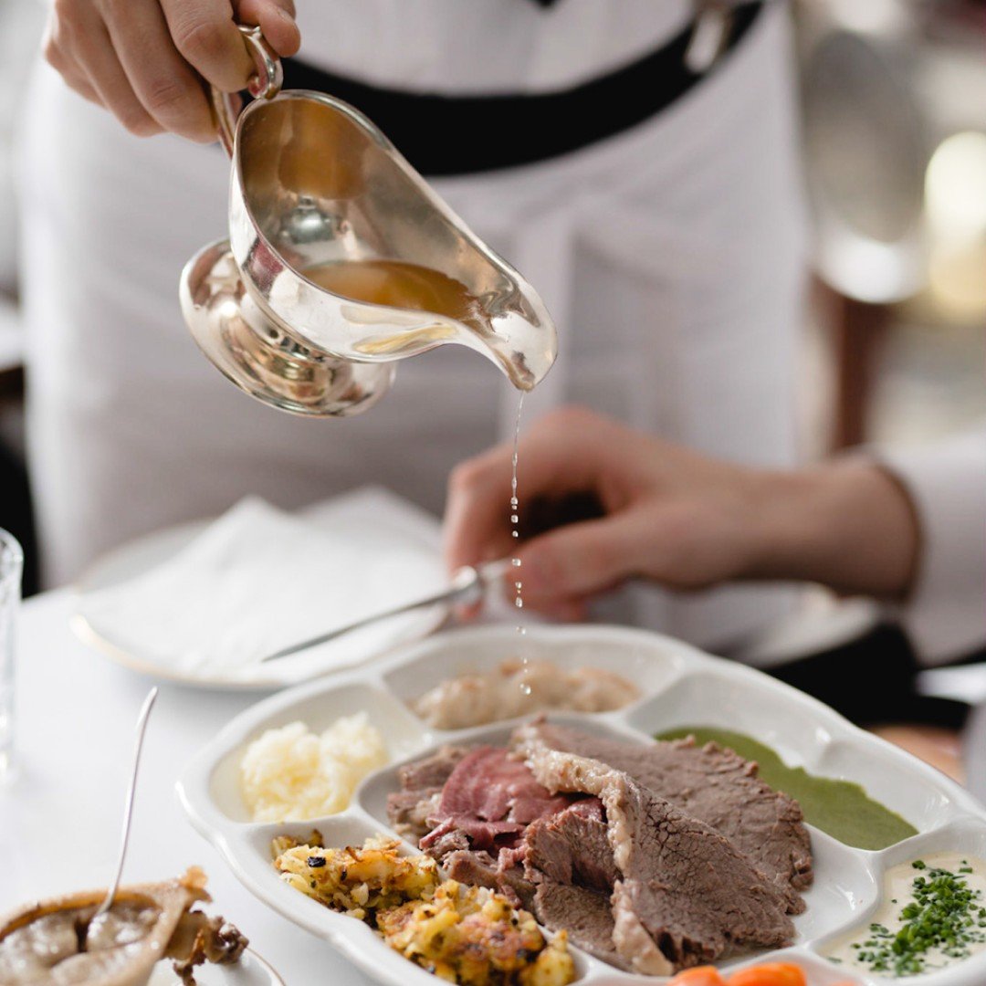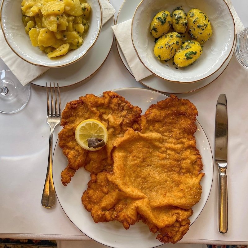 With its white tablecloths, wood-panelled interiors, and glowing chandeliers, the atmosphere is elegant but never stiff. Service is brisk yet charming, and the in-house schnitzel “show kitchen” adds a theatrical touch to an otherwise deeply traditional experience.