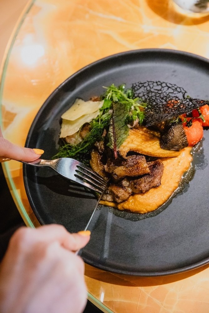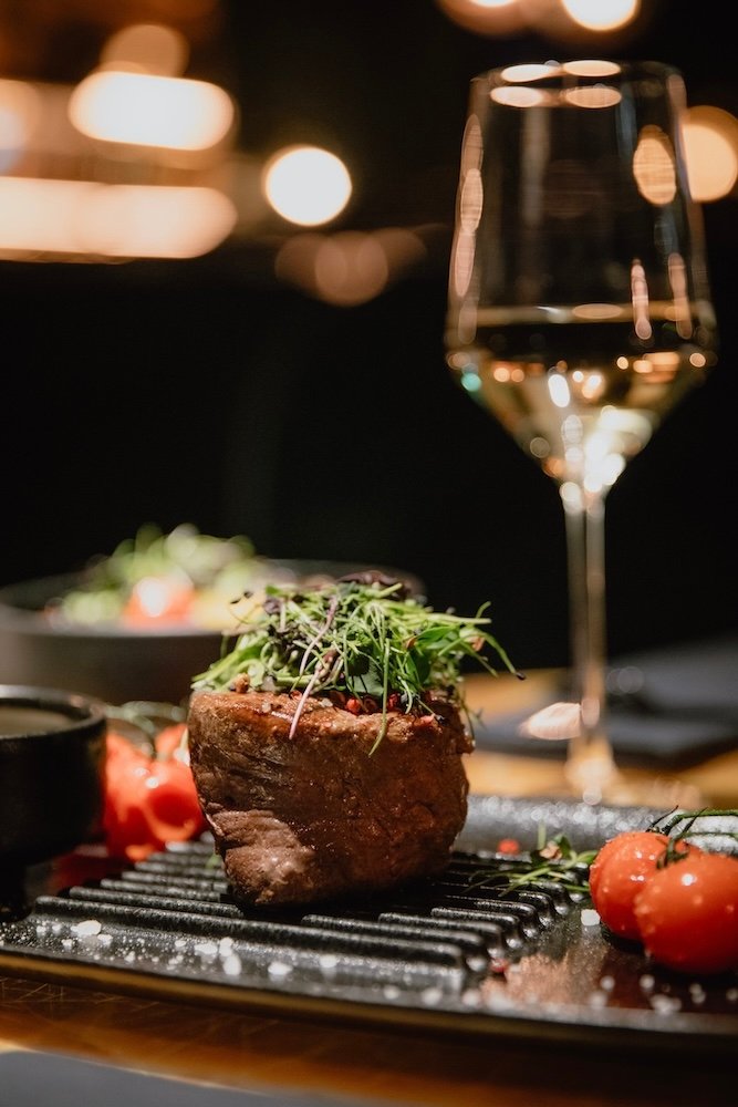 The menu leans modern European with Asian and Mediterranean touches—think tuna sashimi with yuzu ponzu, beef tataki, lobster pasta, or black cod miso—all elegantly plated and built for sharing. Presentation is sharp, flavours are well-balanced, and the cocktail list reflects the same global influence with signature twists and premium pours.