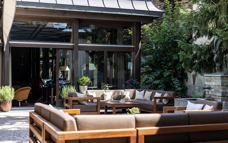 Joseph’s Bar & Terrace, located in Mont Cervin Palace, offers a sophisticated lounge atmosphere with panoramic views of the surrounding Alps. Inside, rich wood panelling and leather seating evoke the charm of a classic Swiss bar, while the outdoor terrace is perfect for sunny afternoons or après-ski drinks.