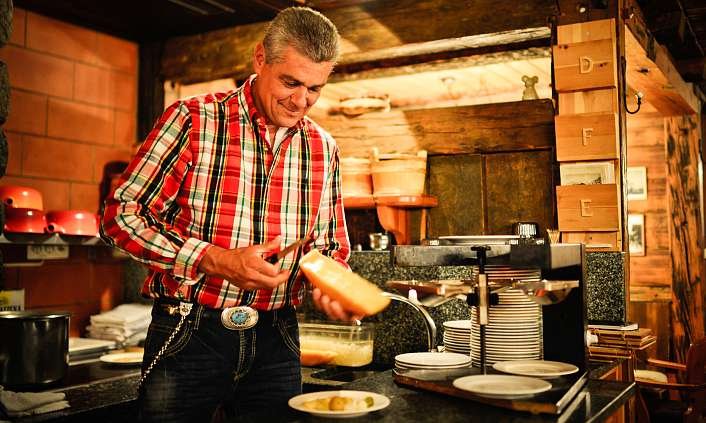 Restaurant Schaeferstube, housed in a charming wooden chalet and part of the Julen family’s long-standing hospitality tradition, specialises in authentic Valais cuisine with a particular focus on dishes prepared from the family’s own black-nose sheep. The menu celebrates regional heritage through hearty, mountain-inspired flavours, showcasing meats, cheeses and seasonal produce from the surrounding Alps.