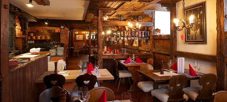 The interior retains the warm, rustic character of a traditional Swiss stube: timber walls, soft lighting and a cosy, home-like feel that invites unhurried dining. Despite the rustic setting, execution remains refined, with careful preparation and attentive service elevating each classic dish.